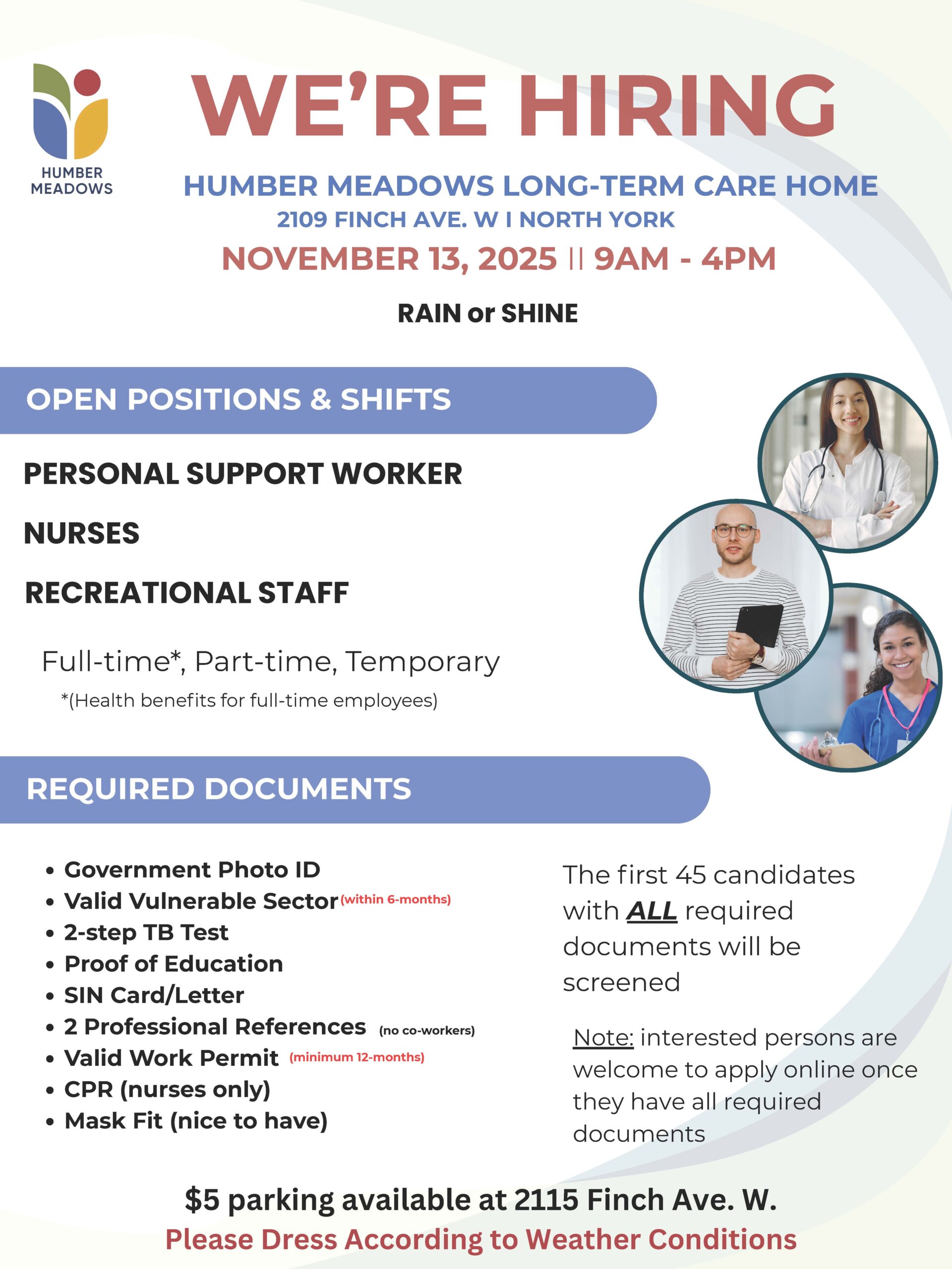 We strongly encourage all candidates to apply who share the same commitment, which can enable us to provide our residents with the best possible care. Humber Meadows welcomes applications from peoples of different colour, race, sex, religion, national or ethnic origin, sexual orientation, disability, and any other characteristics that define who you are.